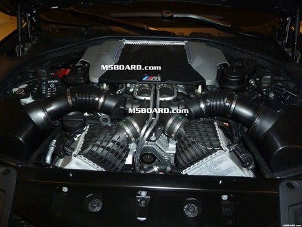 Guys at M5board.com managed to secure the first pictures of the all-new BMW M5 2012. It’s the production version which is yet to be fully revealed. So far we have only seen it as a concept car. Besides the fact that this engine looks pretty cool, it is also massively powerful. It’s a 4.4 liter biturbo V8 which is already used in the X5M and X6M with an output of 555 hp. For the M5 though, people who are aware of what’s going on in Bavaria say the output will be raised to nearly 600 hp. BMW has not confirmed it yet, or the rumors about the car getting a manual gearbox and AWD options.