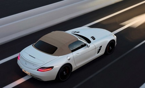 To achieve the same level of driving dynamics – without a fixed roof, the Mercedes-Benz SLS AMG Roadster incorporates several features specifically designed to strengthen the bodyshell, including side skirts with greater wall thicknesses and additional chambers. The dashboard cross-member is supported against the windshield frame and center tunnel by additional struts, and a curved strut between the soft top and the tank reinforces the rear axle. The lack of a roof and gullwing doors means that the open-top SLS AMG has a reinforcing crossmember behind the seats to support the fixed roll-over protection system. This also accommodates the 250 watt subwoofer of the Bang & Olufsen BeoSound AMG high-end sound system.