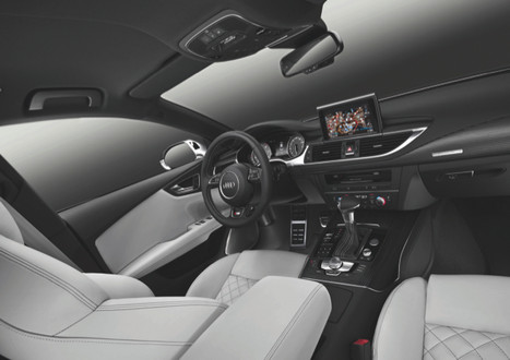 The interior is the same, but you get S7 logo in the illuminated door sill trims, the aluminum strip on the S tronic selector lever and the aluminum shift paddles. The footrest and the pedals are made of stainless steel, and the soft keys of the MMI operating system are in an aluminum-look finish. Aluminum, carbon, natural fine grain ash and layered Beaufort oak as well as Pearl Nappa leather and Alcantara, with the leather grades Milano and Valcona, are the items you can style your cabin with.