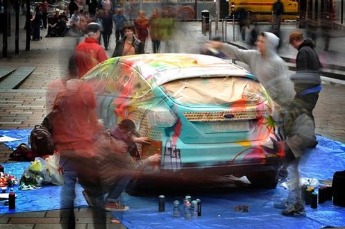 Six street artists used a public studio in the Scottish city of Glasgow to create a one of a kind Ford Focus art car.