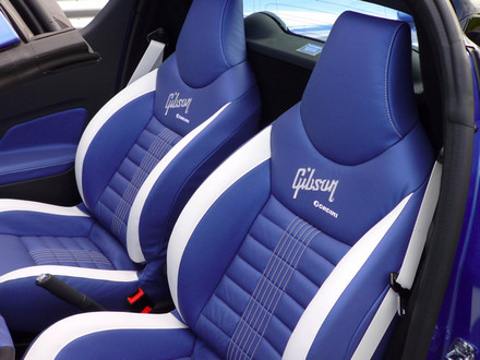 The Gordini Gibson Renault Wind comes with exclusive leather seats with real guitar strings, in addition to a host of other rocking details, such as embroidered Gibson logos feature on the seat backs and blue leather-trimmed dashboard, and guitar potentiometer knob used for the audio system’s volume control, which is a very nice touch.