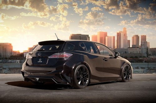part from the body kit, the special paint job decorated with black accents, and the 19-inch wheels contribute greatly to the style of the car. The wheels are wrapped with 235/40ZR19 tires. Five Axis CT 200h also benefits from coilover suspension and high performance brakes.