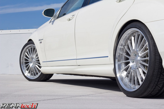 Of course, these two-piece wheels are available for a wide variety of Mercedes Benz vehicles. Shown here is 21-inch size, they feature a brushed aluminum finish, but can be had in any custom finish upon request. The wheels are complemented by lowered suspension courtesy of RENNtech digital lowering module (DLM). Together they give the S-Class a killer look.