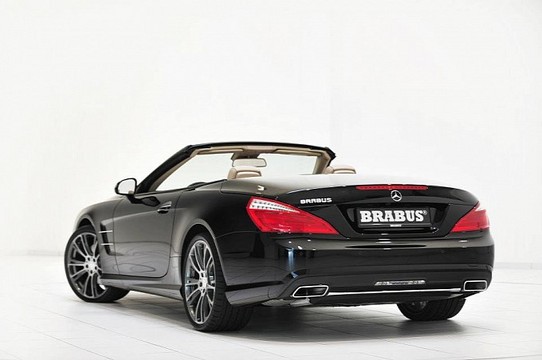 Brabus programs for tuning the new 2013 Mercedes SL begins with a visual package for the SL500. Where does it end? Well, when they launch an 800-hp version. But for now all you get is a set of wheels from the new Monoblock A series, sport suspension, and a revised interior with beige leather upholstery and trimming. As always, Brabus’ color of choice is metallic black, complemented by chrome and steel parts, in this case on the front and side grille, and rear diffuser.
