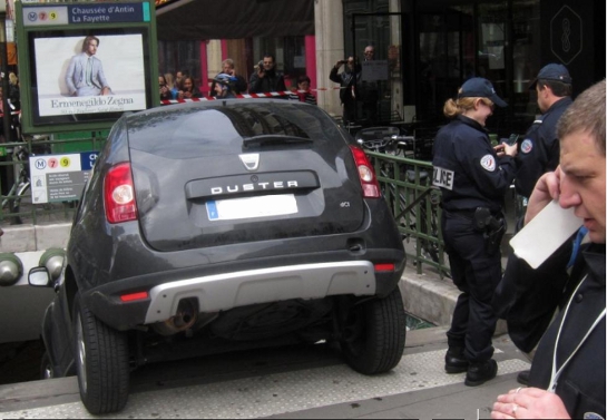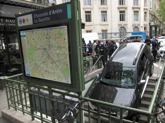 A 26-year-old man decided to park his car down the steps of a Metro station (Chaussee-d’Antin La Fayette) in central Paris this Tuesday, mistaking the entrance for a car park that was just ahead.