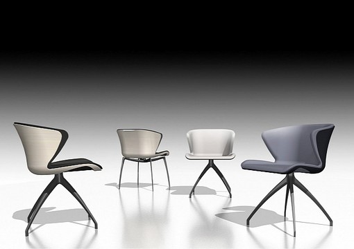 Naturally, all the products have something car-like about them. To mention a few, the wooden backrest shells are inspired by the innovative design idiom of the seat shells in the current research vehicles such as the F125, and the sideboard has a glass door with a surrounding bevel reminiscent of the air intake on a sports car.