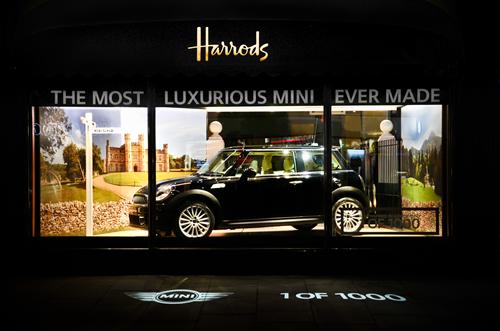 To complement the beautifully crafted window display, which includes a manor house and gates to reflect on the car’s quintessential British character and screens that provide information about the car, each night the MINI logo and the words ‘1 of 1000’ will be projected on to the pavement outside the window. That reminds people there’s still plenty of these left to order!