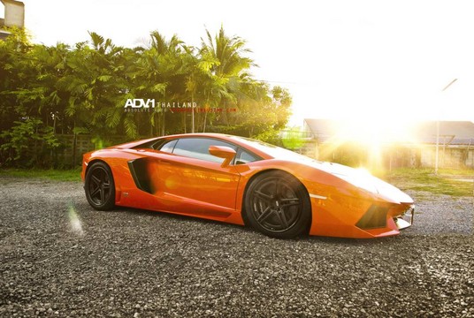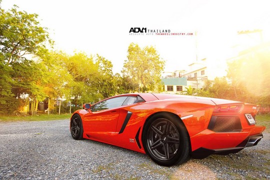 ADV1 Wheels Thailand dealer Absolute Auto released these photos of a Lamborghini Aventador sitting on a set of 19? front/20? rear ADV05 Track Spec Superlights with gloss black lips and matte black centers, and they were too good to pass on. The wheels works with the styling of LP700 fantastically well, but then ADV1 wheels look great on almost any make and type of car. The dark finish also complements the color of the car. Check out the pictures after the jump.