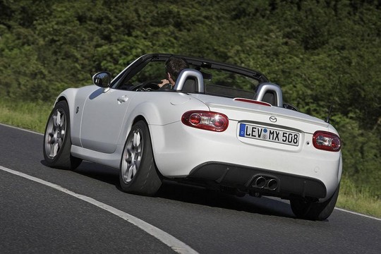 The world is waiting with baited breath for the new generation of Mazda MX-5, mainly because it will spawn a new Alfa Romeo Spider. But before that happens – and it’s going to take a while – Mazda will squeeze the current-gen MX-5 for every last drop of juice it’s got. At the Leipzig motor show in Germany they revealed the MX-5 Yusho, a concept model with 240 horsepower.