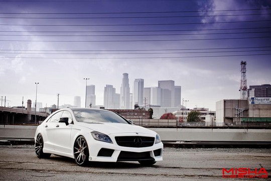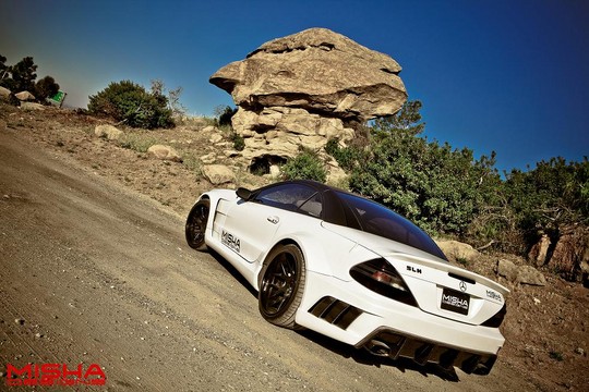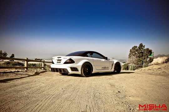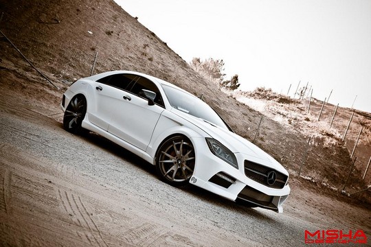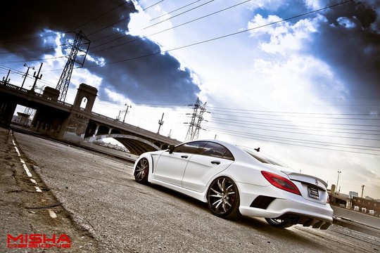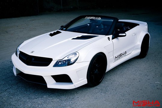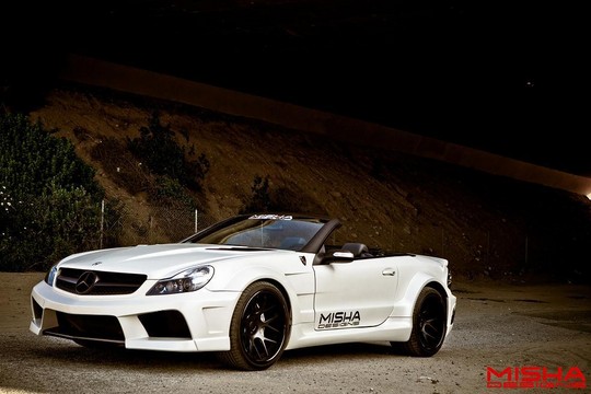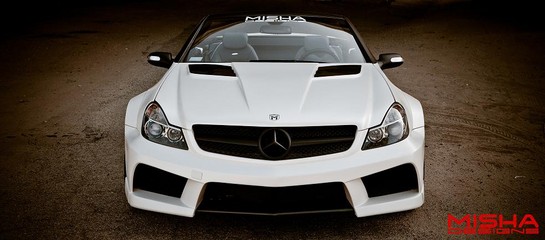 Here’s two of the Misha Designs finest cars hanging out together. We have the Mercedes SL and the new Mercedes CLS, and while they’re not exactly our cup of tea, fans of extreme body kits will drool all over them and fantasize about them in their sleep. The SL has been around for a while, but it still looks interesting. The CLS is much newer, and it looks pretty awesome. Both cars benefit from redesigned front and rear bumpers, massively flared wheel arches, tall side skirts, front and rear spoilers and side vents. Blacked-out parts also complement the design.
