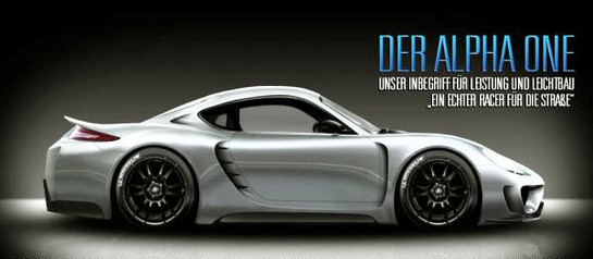 The Alpha One appears to have borrowed its headlights from Porsche Panamera, and its taillights from the new Porsche 991. Front and rear bumpers are modeled on those of the Porsche 918, and the whole car is planned not to weigh more than 1.2 tonne. The car also has considerably more width than the standard Cayman, which adds to its visual drama.