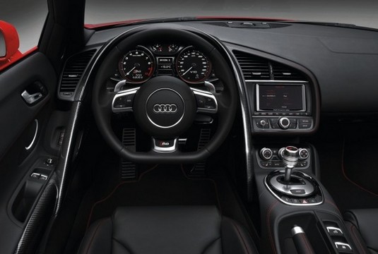 Audi also introduces a new a 7-speed S tronic transmission for all variants. The engines have not changed though. The basic R8 gets a 430-hp 4.2 liter V8, but it’s a bit faster thanks to the new transmission with a0-60 time of 4.3 seconds. The Spyder does that in 4.5 seconds. Manual versions are about 0.3 seconds slower.