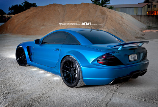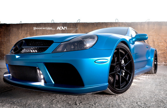 This ADV1 car is something rather special. It’s a rare Mercedes SL65 Black Series that not only gets the wheels – a set of 20-inch ADV5.0 Track Spec finished entirely in gloss black – it also features a few mods, chief among which the matte blue wrap. While we dig the wheels big time, we’re not really fond of the paint job. The SL Black is a mean and aggressive beast. This color makes it look soft and cuddly! That’s not good.