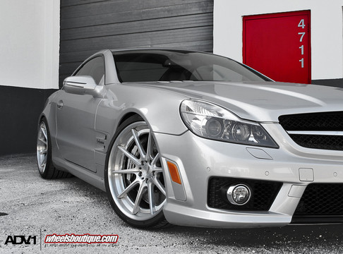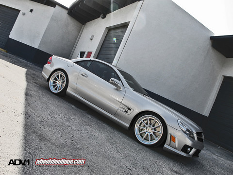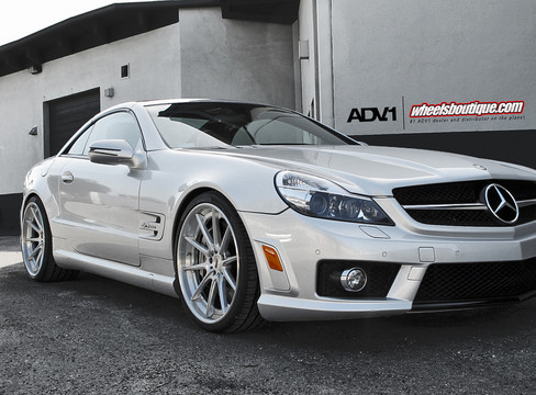 The old Mercedes SL63 might look a bit dated now that the new-look car is around, but it is still prettier than the new one. And this particular one here is especially fine as it’s finished in a cool metallic silver color, and fitted with a set of ADV10TS SL wheels size 20×9 front 20×11 rear, wrapped in Pirelli 255/30/20 and 305/25/20 tires respectively, and with polished finish.