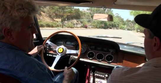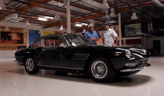 Over the year’s we’ve seen a great number of cars at Jay Leno’s superb garage, but none of them – as far as we can remember – was a Ferrari. Jay, by his own admission, is not a Ferrari guy. He thinks modern Ferraris are way too complicated and technical. This time though he decided to welcome a Ferrari into the garage because it’s a 1966 330 GT 2+2, and also because it belongs to Adam Carolla. How could he say no.