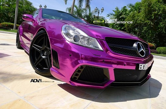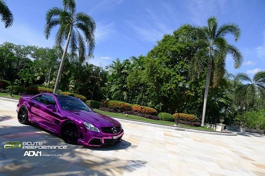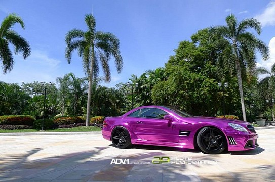 This tuned Mercedes SL65 AMG really gives a whole new meaning to the phrase ‘extreme makeover.’ Whoever devised the tuning program for this car definitely didn’t like the car in its standard form. So he fitted it with a set of ADV1 Wheels. That is great. Then he decided to use Wald’s Black Bison body kit. Fair enough, it’s not the coolest kit available for the SL, but hey. The last part, however, is not very good. Why the hell did they wrap it in chrome purple?