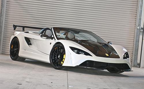 As for the specs and details, Renovaio T500 is a mid-engined light weight sports car featuring an Audi-sourced 4.2-litre 444bhp V8 engine, hits 0-62mph in 3.7 seconds with a top speed of 193mph. It has certainly got the speed, and with a fierce body that has lots of holes in it, and a tow-tone paint job, and a big wing, you have to say it also looks the part.