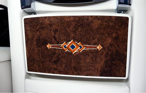Then there’s the Phantom Series II Drophead Coupe furnished in resplendent mother of pearl onlays completes the show line-up. Specially sourced wood veneers, selected for richness and complexity of grain, are adorned with mother of pearl or silver inlays – the form and structure of the pieces reminiscent of the fine cabinet making so prevalent in the Art Deco period.
