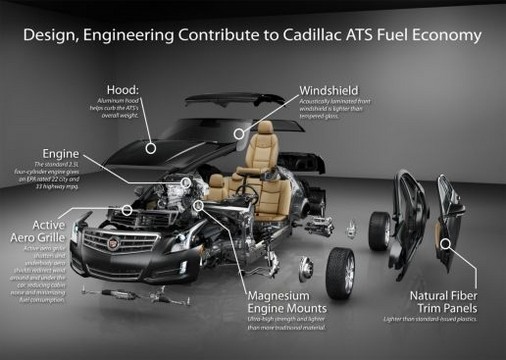 The ATS has lots of built-in fuel-saving features such as swept-back styling for minimal air resistance, active aero grille shutters that automatically close when additional engine cooling is not needed, and optimized underbody. On top of all that, they have managed to keep the weight of the car fairly low at 3,315 pounds (1,503kg).