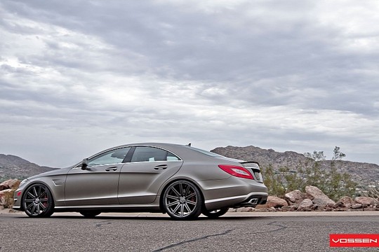 If that ADV1 Mercedes CLS63 we just showed you is a bit too dark for your taste, check this out. Here’s a freezingly cool CLS63 finished in an awesome matte graphite, featuring a set of 20-inch Vossen wheels in the same finish. They are 9-inch wide at front and 10.5-inch wide at the rear (concave).