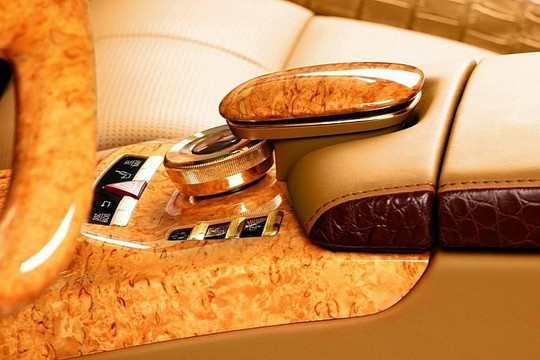 TopCar is a Russian tuning company, and since nothing is normal in Russia, their work always has an air of madness about it. Here’s what they’ve come up with to upgrade a Mercedes S600 Guard. They couldn’t mess with the bulletproof Benz’ exterior, so instead they focused on the interior. They’ve styled it with an interesting blend of gold, wood, Karelian Birch veneer, Nappa and crocodile leather.