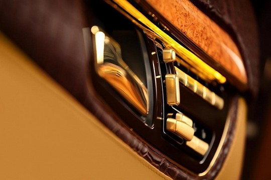 All the silver and chrome parts are covered with pure gold, which goes rather well with the amazing wood trims and cream leather that covers most of the door panels, dashboard and seats. The main highlight however is the crocodile leather, which has a lozenge texture and covers the rest of the seats, doors, the dashboard, as well as the floor and the ceiling. The whole thing is unbelievably vulgar.