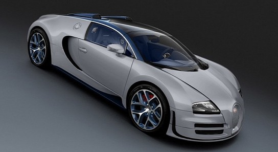 Another motor show, another special edition Bugatti Veyron. And by special edition we mean a new paint job. This one is based on the latest model, the Bugatti Veyron Grand Sport Vitesse, and is called the Rafale. Unveiled at the Sao Paulo Motor Show in Brazil, the car features a Gris Rafale grey and blue color combination.