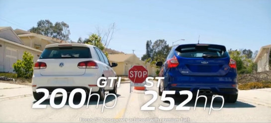 Ford, as you may know, is making a series of viral videos in which they put the new Focus ST against its main rivals in the market, so they can boast its superior features. In this new episode the Focus takes on the Volkswagen GTI, with Ken Block driving the Ford and Vaughn Gittin Jr. piloting the VW.
