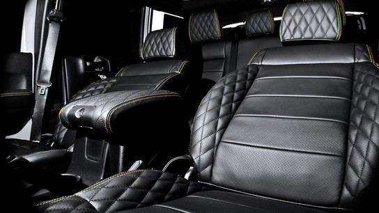 Khan Design’s Expedition Vehicle division has come up with a new tuning package for the Jeep Wrangler 2.8 diesel. Called ‘Sahara’ the car features a unique expedition yellow paint job, complemented with tinted windows, smoked lights, black bumpers and steps, and black Kahn RS Wheels.