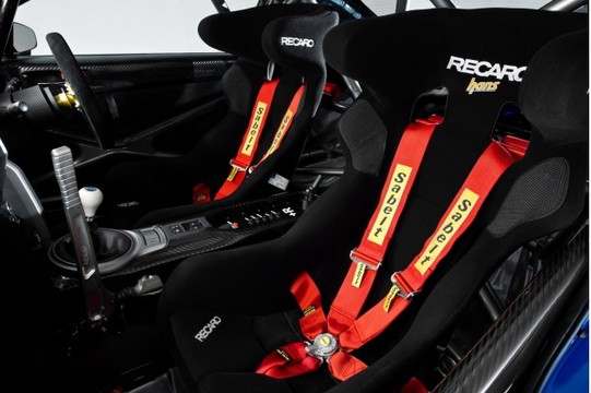 PBM’s Subaru BRZ has a full roll cage, Recaro racing bucket seats with six-point Sabelt harnesses, and carbon fiber interior panels. Those more serious about their business with the BRZ can also opt for the 18-inch Enkei wheels with Pirelli P-Zero tires, AP brakes, Cusco adjustable suspension, STI handbrake, and Recaro winged-HANS seats.