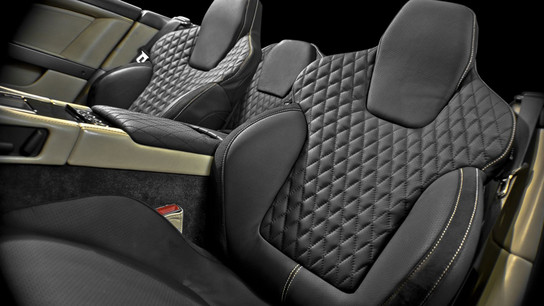 Kahn didn’t want to mess too much with the styling of the Volante, so they just fitted it with Kahn Sports exhaust, Sports lowered suspension, red calipers and privacy glass. Same applies ot the interior. DB9’s dashboard is a bit hard to live with due to the size of the buttons and the design of the dials. But aesthetically, it is one of the best in the world. Here Kahn provides cream and pearl grey interior detailing.
