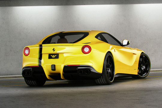 Besides upgrading the standard 740-hp V12 to 785 horsepower and 690 Nm of torque, WAM has fitted the F12 with 21-inch wheels front and 22-inch rear, and lowered the suspension by 30mm. The wheels are finished in black and feature a yellow outer lip to match the color of the exterior.
