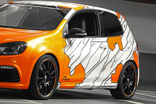 Wrapping expert Cam Shaft has come up with an upgrade package for the R version of Golf VI. They call it the Electrified Golf because of its special wrap, but neither the wrap nor that name are cool. However, they’ve also given it a performance boost that is more than make up for the visual mess.