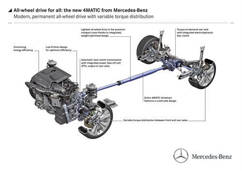 Mercedes announced they are working on a new 4MATIC all-wheel-drive system to be introduced in the yet to be revealed Mercedes CLA and CLA 45 AMG, before becoming an standard option for the C-, E-, S-, CLS- and CL-Class, as well as all the SUVs and crossover.