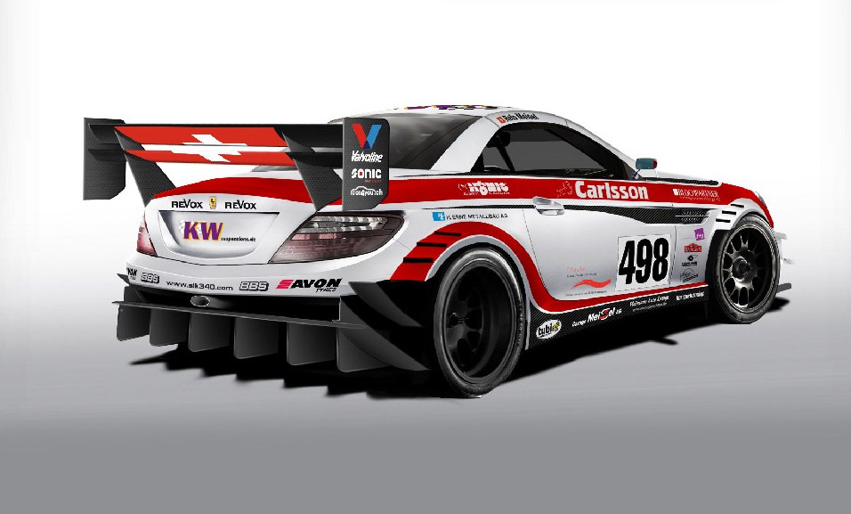 This car, called SLK JUDD, has been totally stripped-down, and if that wasn’t enough, most of the body components are replaced with carbon fiber ones. The result is a curb weight of 780 hp. Now you see why it needed such a large rear spoiler: to create downforce. The aero kit is full-on racing, with a front splitter, wide vented fenders, side blades, rear wing and rear diffuser.