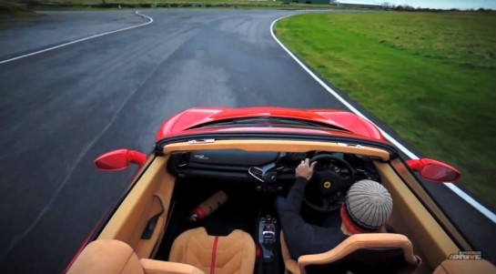 People on the internet are saying this Ferrari 458 Spider is on loan to Jeremy Clarkson and that he provided Chris with the opportunity to drive it. Well, the car certainly looks exactly like the one Jezza drove in the last Top Gear DVD, but it’s a UK press car. It could be under anyone’s contract now.