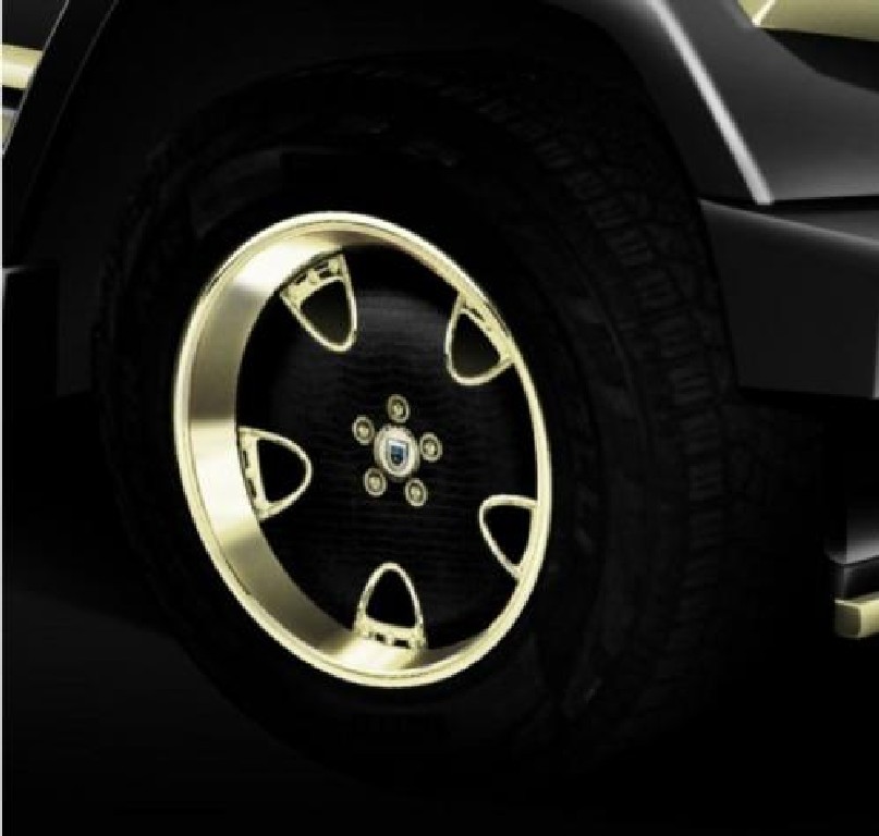 This ungainly truck is apparently based on the Mercedes GL63 AMG, so it definitely has the power to move around all that luxury. And there’s plenty of it. The bespoke armoured body is finished in black and garnished with gold accents. The highlight of the exterior is a diamond-encrusted hood ornament.