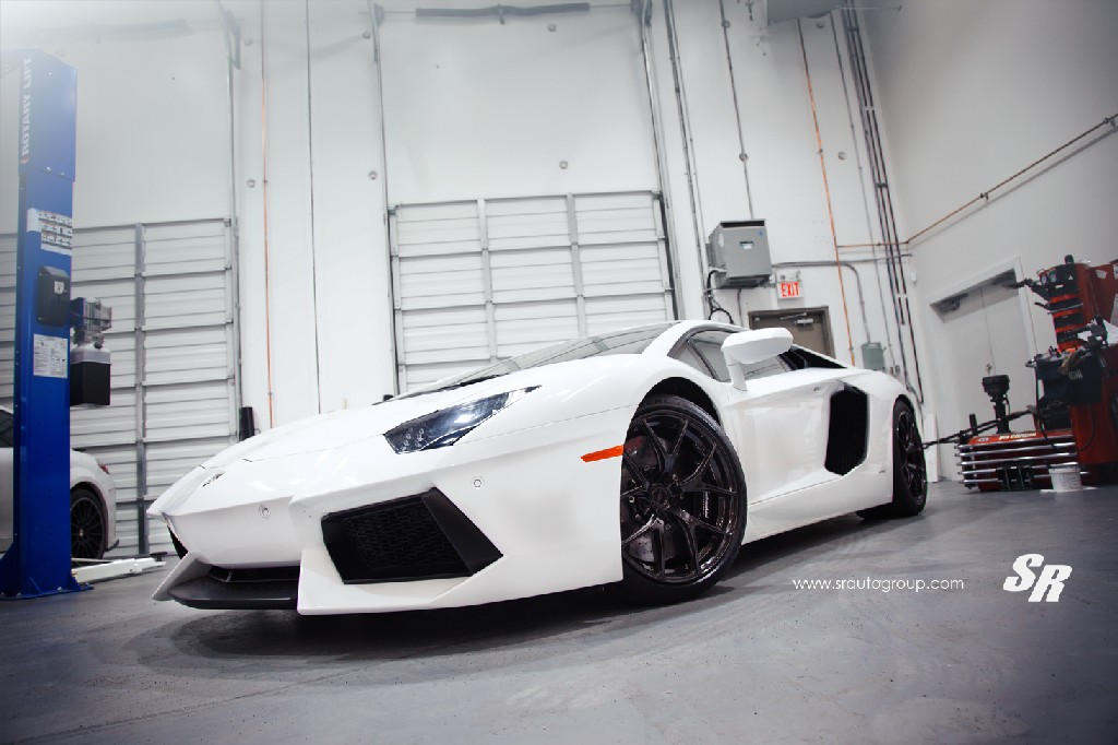 Courtesy of SR Auto, Lamborghini Aventador gets some new set of rims from PUR Wheels. In car tuning, PUR Wheels are the equivalent of Jimmy Choo shoes in fashion; high-end shoes for a high-end car. They are 4OUR Monoblock models in size 19×9.5 front and 20×13 rear, finished in diamond black. White car, black wheels, classic combination.