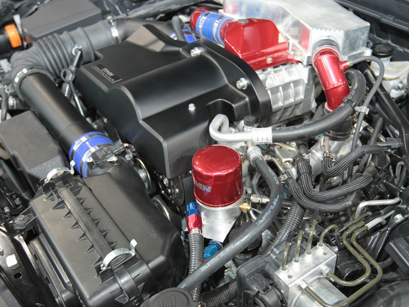 Other changes include a sport exhaust system, leather bucket seats, sport steering wheel and shift knob, roll cage, and additional boost gauge, water temperature gauge, and oil temperature gauge.