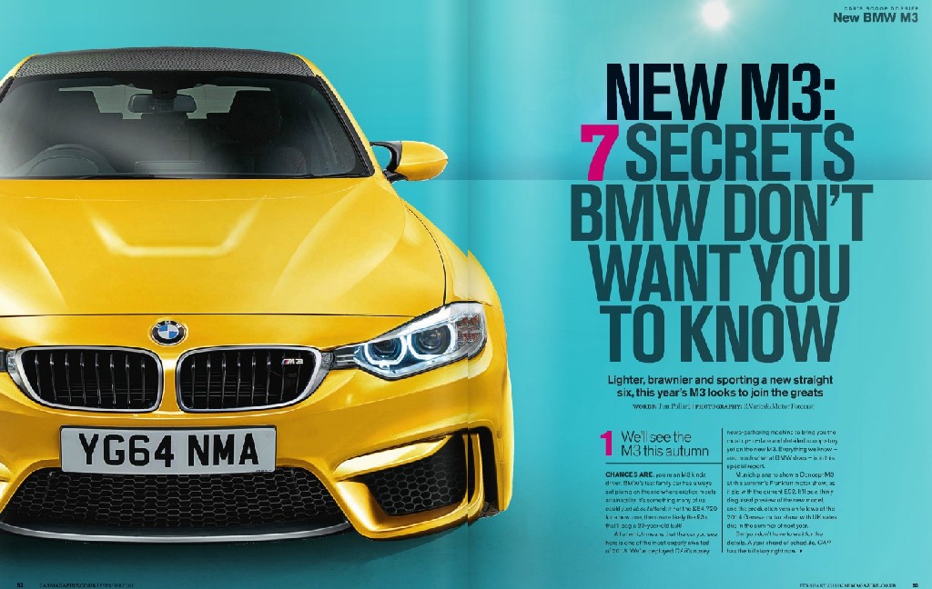 A few months before its debut at the Geneva Motor Show, the new generation BMW M3, allegedly, shows its face on the cover of Car Magazine. These images look like renderings, but they are apparently fully legit coming from BMW themselves.