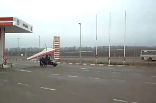 Yep, it’s a flying trike that fills up at a local gas station and then takes off from the highway so calmly like it’s nobody’s business. This is what we call going to work like a boss!