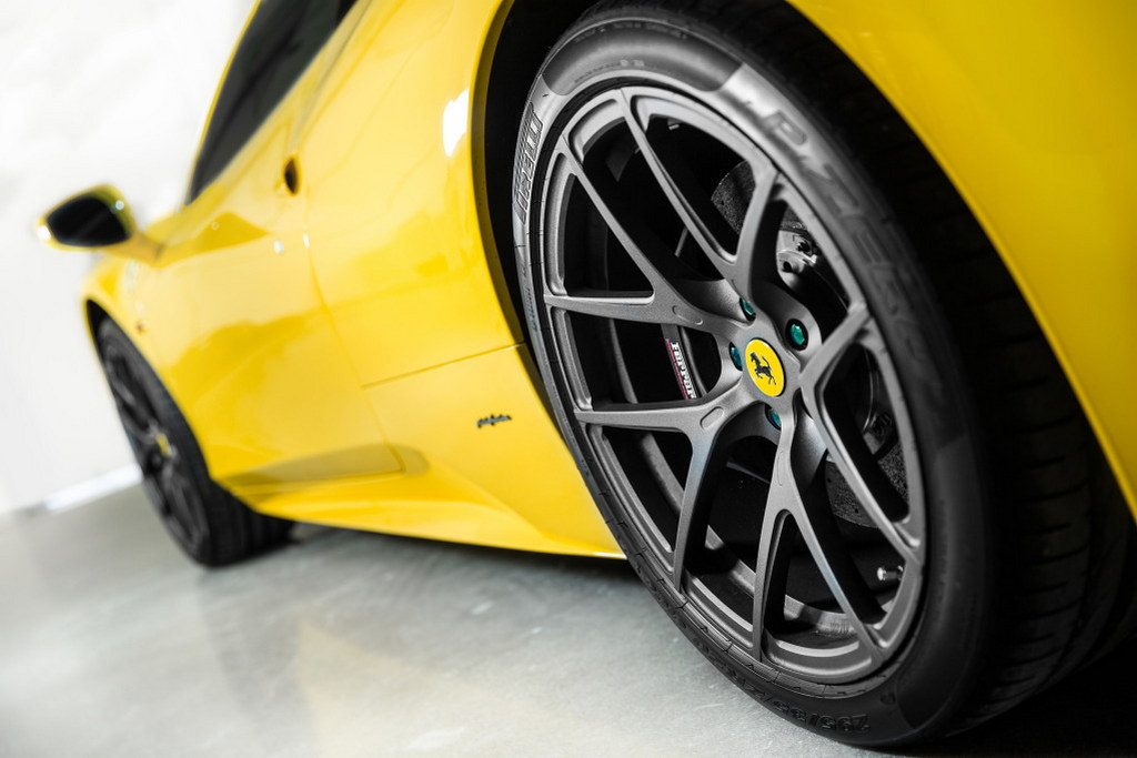 Finished in Gunmetal gray, and featuring original Ferrari center caps, these wheels are 20×8.5 inch at the front and 20×11 inch at the back. The VS-110 is not a particularly showy rim, especially in this finish, which is great. It looks classy and elegant.