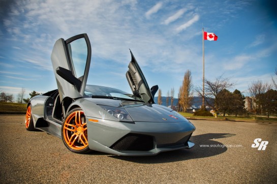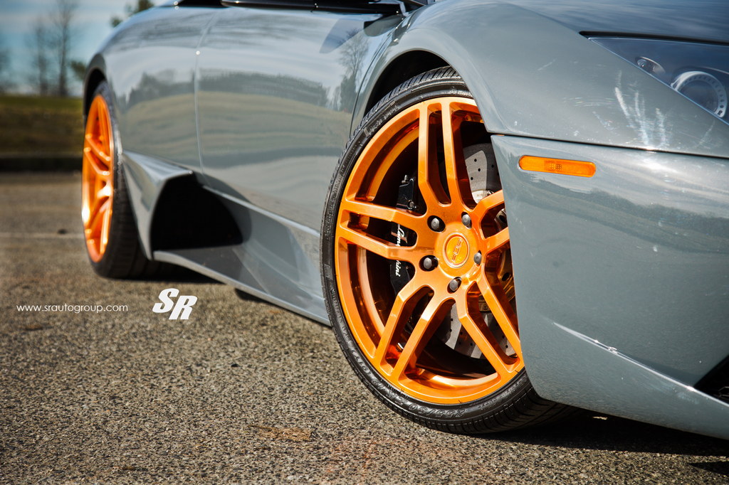 Here’s a Lamborghini Murcielago LP640 fitted by SR Auto with a set of rose gold PUR 6IX wheels, 19-inch front ad 20-inch rear. These wheels work on this car, as they make a nice contrast with the grey exterior color.