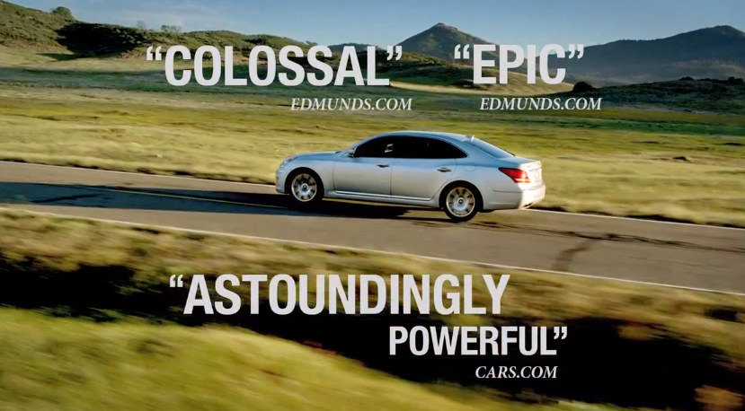 “Equus the Trailer” highlights Equus’ premium luxury features and outstanding performance and refinement. The spot mimics an action movie trailer, featuring Equus as the main character and the film’s hero. The familiar deep baritone of the voice-over actor takes the audience through the 30-second trailer, citing “critics” calling the Equus “Colossal,” “Epic” and “Astoundingly Powerful.”