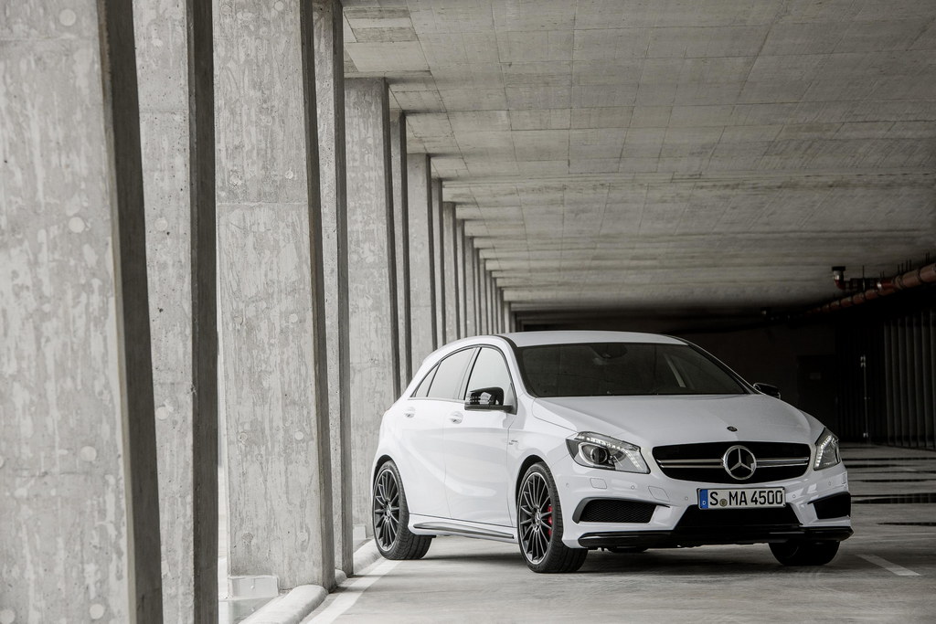 AMG sport suspension, 18-inch wheels, AMG speed-sensitive sports steering with AMG-specific, speed-dependent power assistance and AMG high performance braking system are among the other goodies fitted to the A45 as standard.