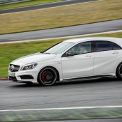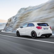 Mated to the AMG SPEEDSHIFT DCT 7-speed sports transmission, and of course AMG’s new 4MATIC all-wheel-drive system, this engine enables the A45 to go from 0 to 100 km/h in 4.6 seconds. Top speed is limited to 250 km/h. It also returns an excellent 40.9 mpg.