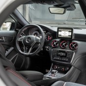 Visually, the car gets the usual AMG treatment with sports bumper, large tailpipes, and bespoke grille, but it is surprisingly restrained and cool for a hot hatch. Inside the cabin you get leather/DINAMICA microfibre with red contrasting top-stitching, AMG instruments, and lots of carbon fiber.