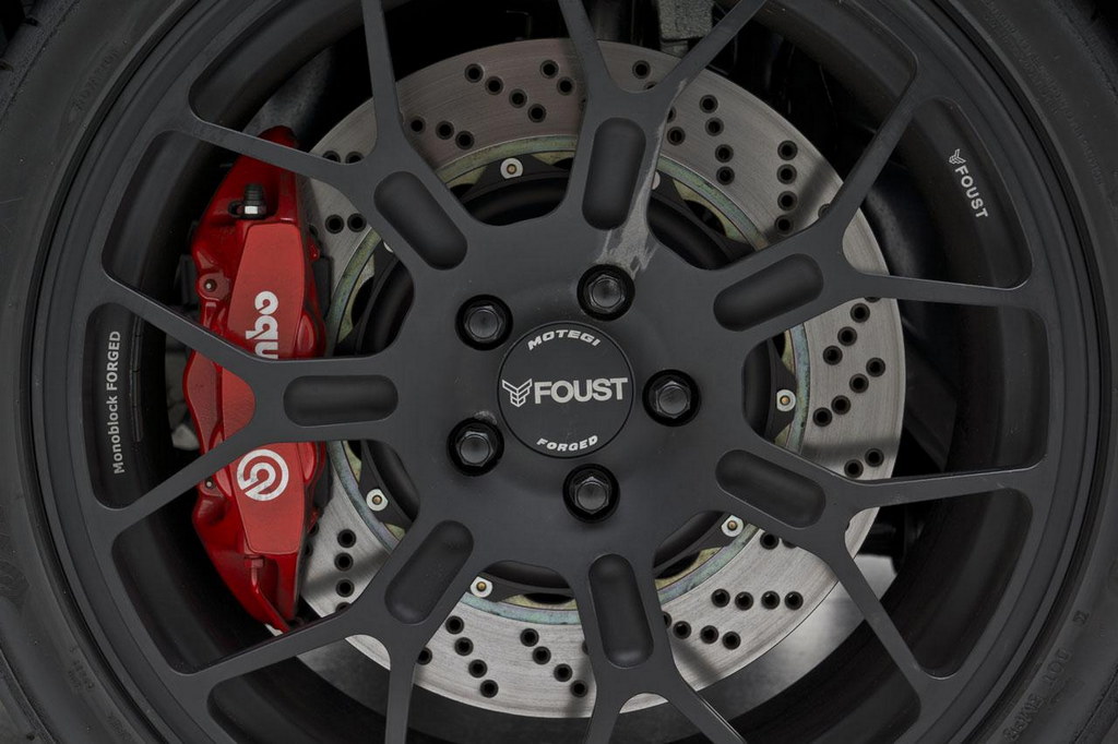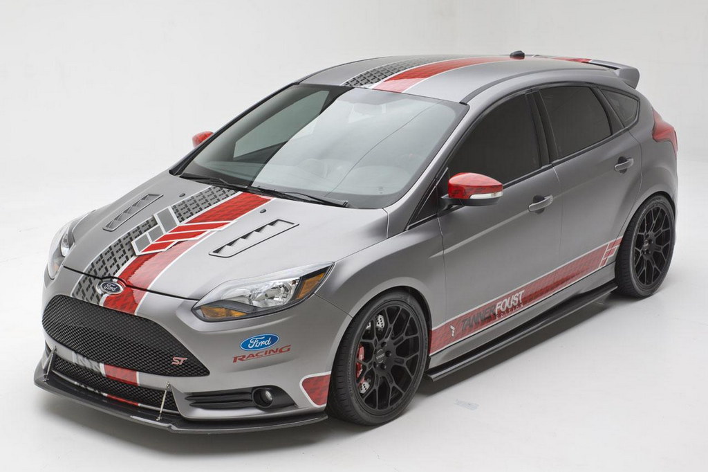 Visually, Tanner Foust’s Focus ST features a mesh grille and an adjustable air splitter at the front, side skirts, new wheels with red brake calipers, and some graphics for its cool gunmetal matte finish.