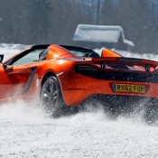 McLaren doesn’t offer a winter driving program for now, but it seems they really like the idea as they recently sent a couple of 12c Spiders out for some fun int he snow. The 12C Spider is the last thing you would think of when going for snow driving. Apart from the fact that it’s a convertible, the car’s a 600-hp rear-drive supercar. It doesn’t work out there.