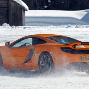 McLaren, however, begs to differ. On the proof of these pictures, they believe the 12C is actually quite good fun to toss around in the snow. The car has an ultra-sophisticated suspension system with a super computer monitoring it every millisecond to ensure the wheels are gripping well. So yes, it probably does work. If anything, we bet it is faster than the Ferrari 458 on snow. The Fezza struggles even with wet surfaces.